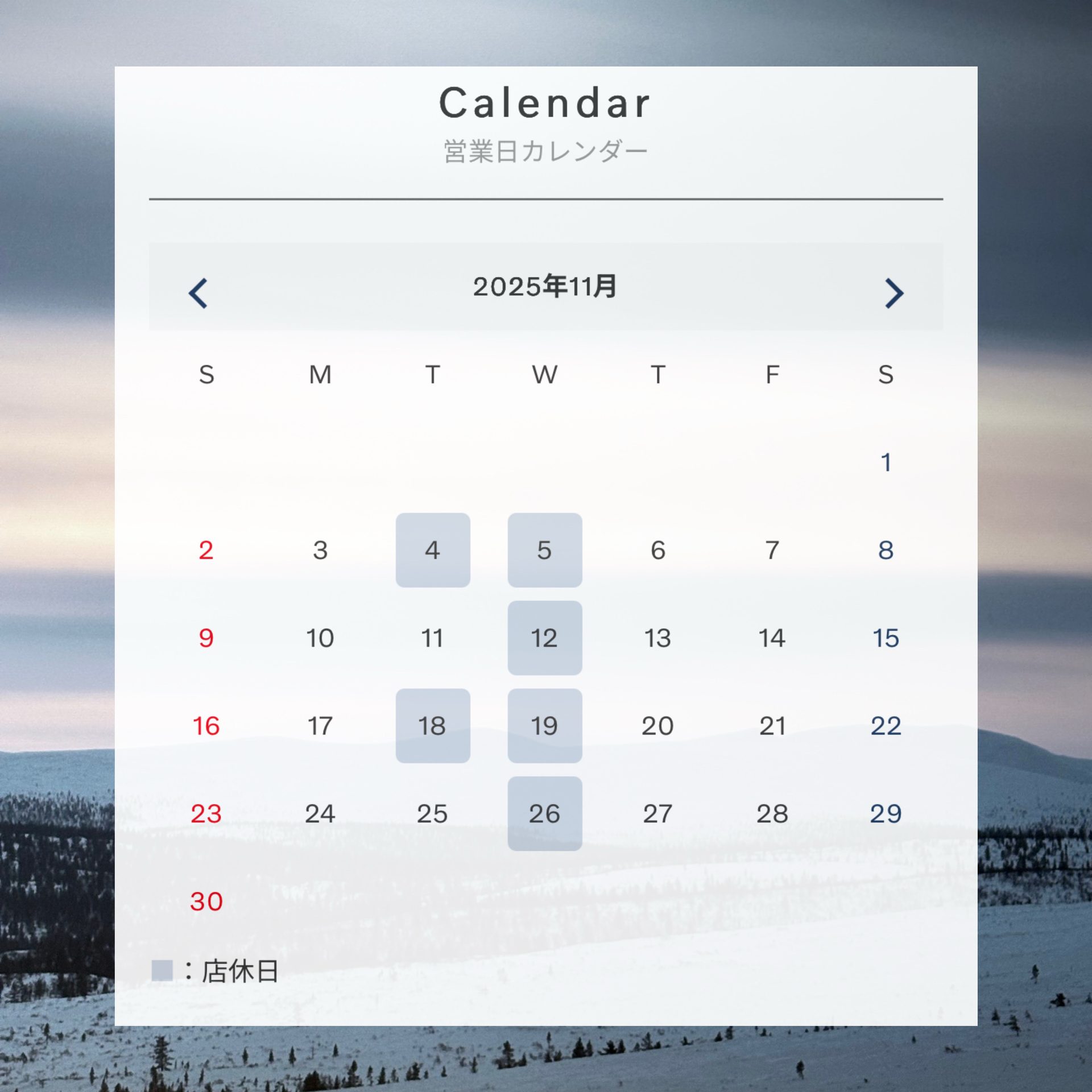 11月定休日のご案内