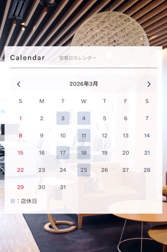 3月定休日のご案内です。